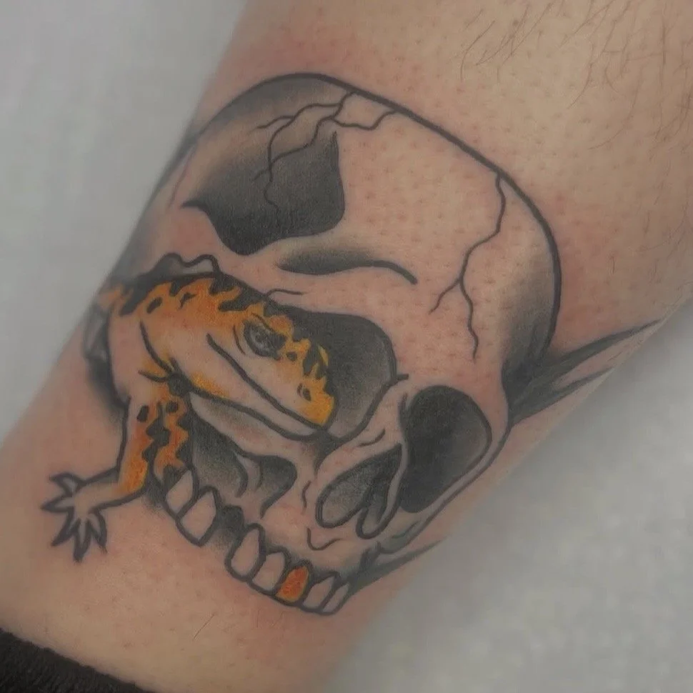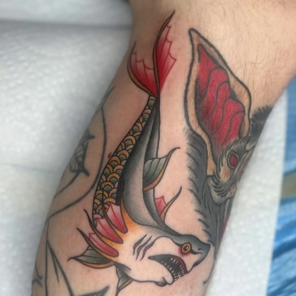 Ryley is a tattoo artist from Whiting, NJ who loves doing traditional pieces, bold color work, and high-contrast stipple tattoos. She’s all about bringing people’s ideas to life and getting to know everyone who sits in her chair. Tattooing is her favorite way to create and connect with others.